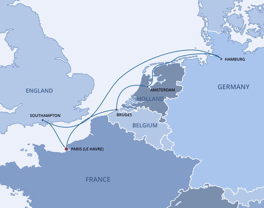 Cruise ships dock at Le Havre Cruise Terminal, close to the city center. Paris is 200 km (124 miles) southeast, reached in about 2.5–3 hours by train, coach, or private transfer. Many cruise programs offer full-day excursions that cover the highlights of Paris or the coast of Normandy. An early start and late return are typical, but a visit to Paris from Le Havre is both possible and rewarding.