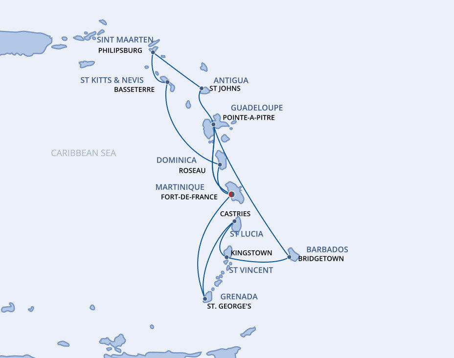 Fort-de-France, located on Martinique is the largest city in the French West Indies and it has personality to match. Life here is vibrant and fast-paced, and the culture is as colourful as the brightly painted shops that line the city’s cobblestone streets. Ships will dock at the port.