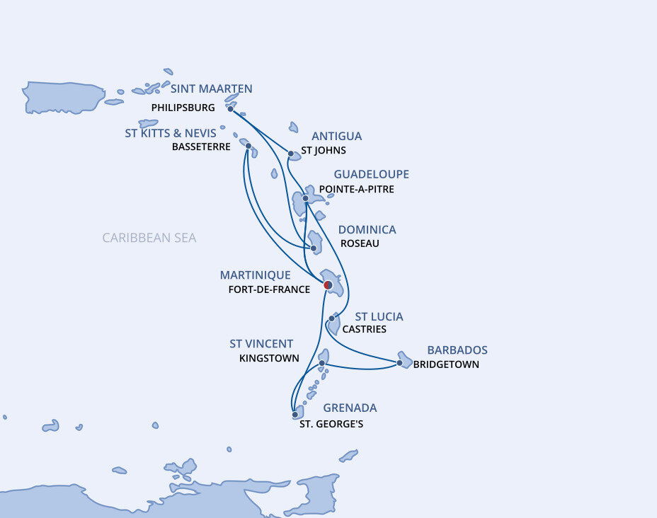Fort-de-France, located on Martinique is the largest city in the French West Indies and it has personality to match. Life here is vibrant and fast-paced, and the culture is as colourful as the brightly painted shops that line the city’s cobblestone streets. Ships will dock at the port.