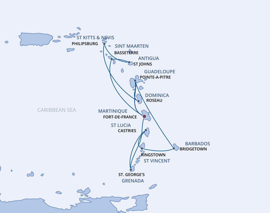 Fort-de-France, located on Martinique is the largest city in the French West Indies and it has personality to match. Life here is vibrant and fast-paced, and the culture is as colourful as the brightly painted shops that line the city’s cobblestone streets. Ships will dock at the port.