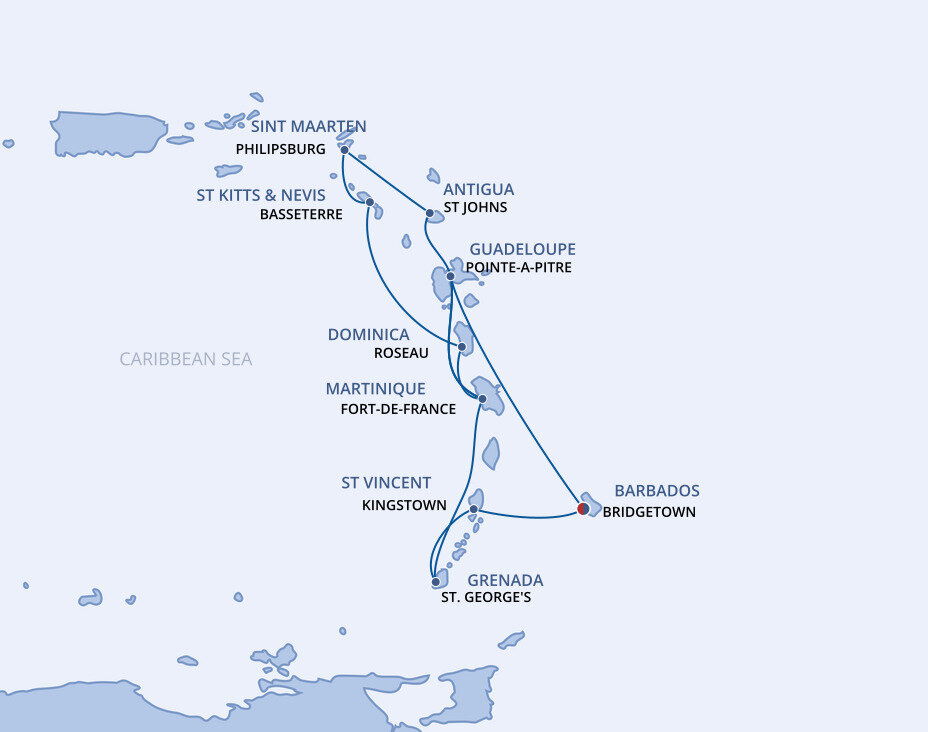 Bridgetown, the captivating capital of Barbados, combines faded colonial history, captivating tradition, and vivid white beaches. Stately colonial buildings intermingle with colourful wooden homes, open-air markets and catch-of-the-day cafés. Ships will dock at this port.