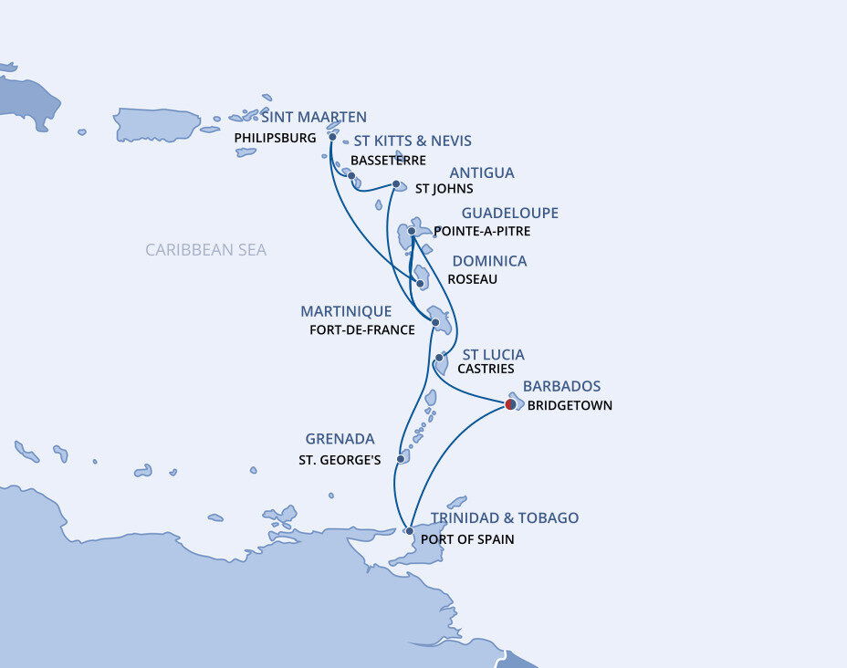 Bridgetown, the captivating capital of Barbados, combines faded colonial history, captivating tradition, and vivid white beaches. Stately colonial buildings intermingle with colourful wooden homes, open-air markets and catch-of-the-day cafés. Ships will dock at this port.