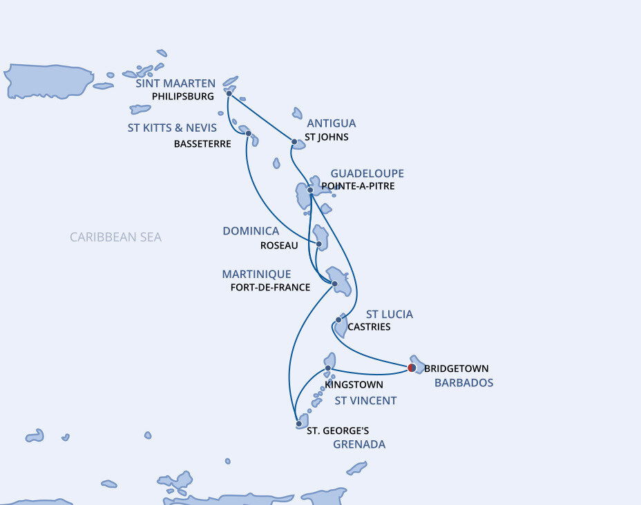 Bridgetown, the captivating capital of Barbados, combines faded colonial history, captivating tradition, and vivid white beaches. Stately colonial buildings intermingle with colourful wooden homes, open-air markets and catch-of-the-day cafés. Ships will dock at this port.
