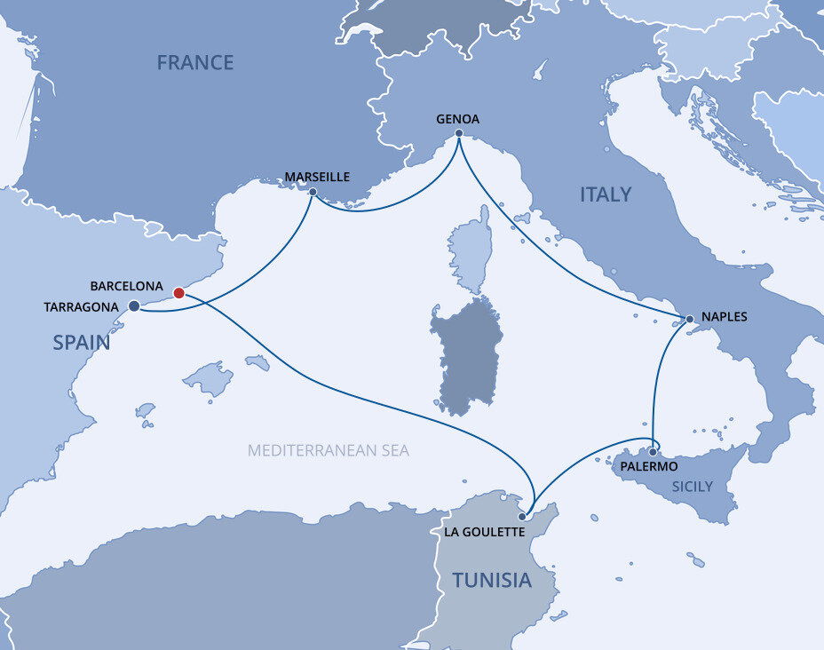 Your cruise finishes today in Barcelona, a captivating city on Spain's northeastern coast. If you're extending your stay in the city, start with a visit to La Sagrada Família, Antoni Gaudí's masterpiece, then wander through the narrow, historic streets of the Gothic Quarter.