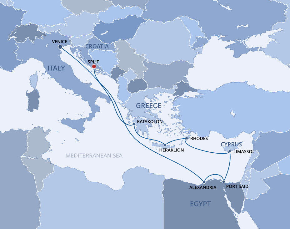 Lying on the Adriatic Sea's eastern shore, Split is known for its terracotta roofs, whitewashed buildings, palm-tree-lined promenade and azure waters. A city of romantic beauty, it was built around the historic Diocletian’s Palace. Ships will dock or anchor at this port.