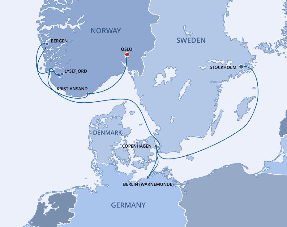 Set on the shores of a sparkling fjord, cosmopolitan Kristiansand is the largest city in Southern Norway. It has a cultural and tranquil atmosphere, a blend of contemporary and traditional architecture, and a natural beauty woven throughout and beyond the city. Ships will dock at the cruise terminal.