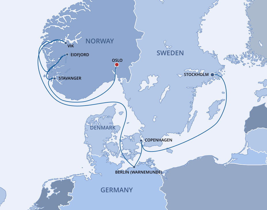 Located at the head of the gorgeous Oslofjord, Norway's capital is encircled by wooded hills and snow capped peaks. Explore the striking Oslo Opera House, where you can walk on the rooftop for harbor views. The Viking Ship Museum showcases remarkably preserved ships from the Viking era, while Vigeland Park features over 200 sculptures by Gustav Vigeland. Visit the Akershus Fortress for a glimpse into medieval history, or stroll along the waterfront Aker Brygge, filled with restaurants and shops.