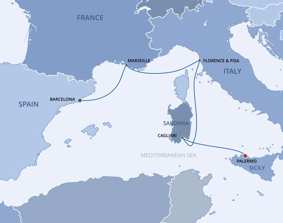 Cagliari, the capital of the island of Sardinia, is situated high upon hills that offer a panoramic view of the Golfo degli Angeli, the Gulf of Angels. Combining Byzantine churches with crumbling Roman ruins and Pisan towers, it’s an elegant, beguiling place to explore. Ships will dock at the Cagliari cruise port in Porto Cervo.