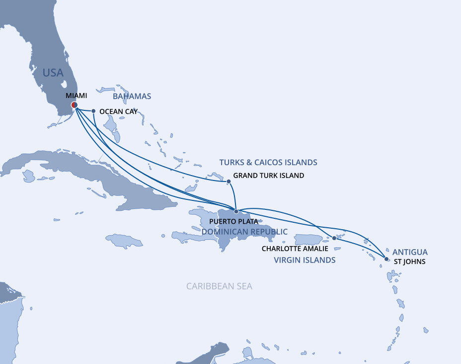 This multicultural city where the sun rules supreme is more than just a cruise port. Visitors from all over the world enjoy Miami’s famous Art Deco buildings, family-friendly zoos and romantic palm tree-lined streets filled with fantastic restaurants. Don’t forget about the white sandy beaches and year-round warm weather, perfect for relaxing before or after your Caribbean cruise from Miami.