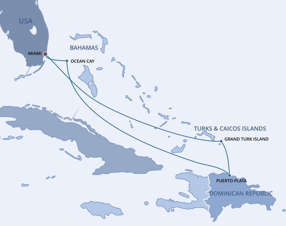 Beach masterpieces of silky white sand and sparkling water shifting from turquoise to royal blue welcome you to idyllic Grand Turk. The capital of the Turks and Caicos Islands is a small island bursting with turn-of-the-century charm, retaining the look and feel of the Caribbean 40 years ago. Ships will dock at the Grand Turk Cruise Centre.
