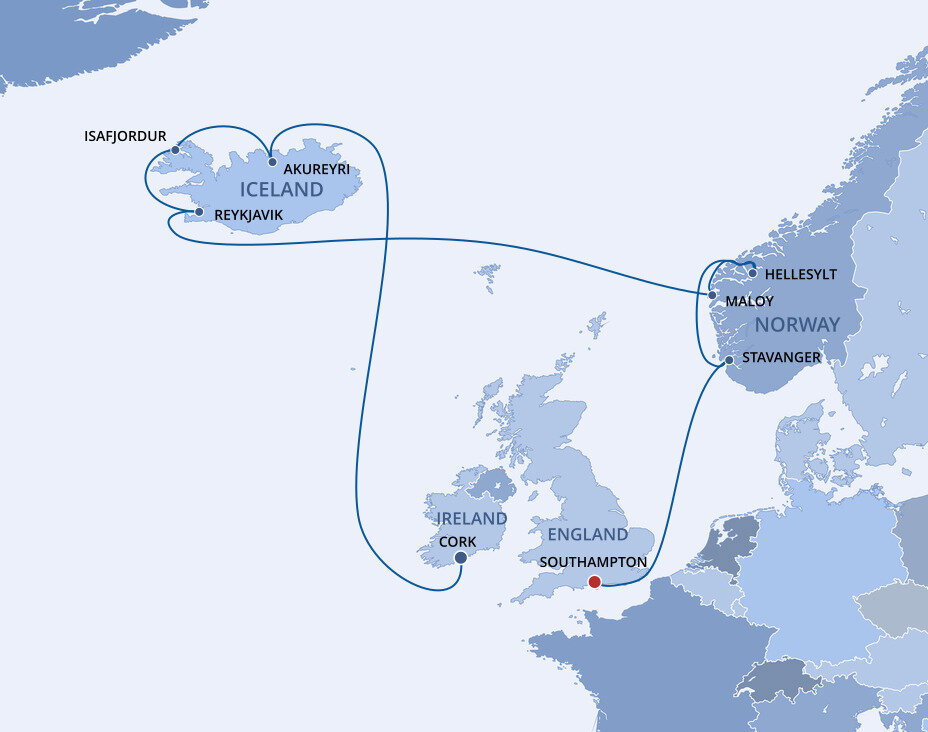 Iceland’s Capital of the North is the gateway to a thrilling land of roaring waterfalls, soaring volcanoes and glorious wildlife. Situated at the head of Eyjafjordur, Iceland's longest fjord and with a backdrop of dramatic snow-covered mountains, Akureyri is Iceland's second largest city. Ships will dock at the pier.