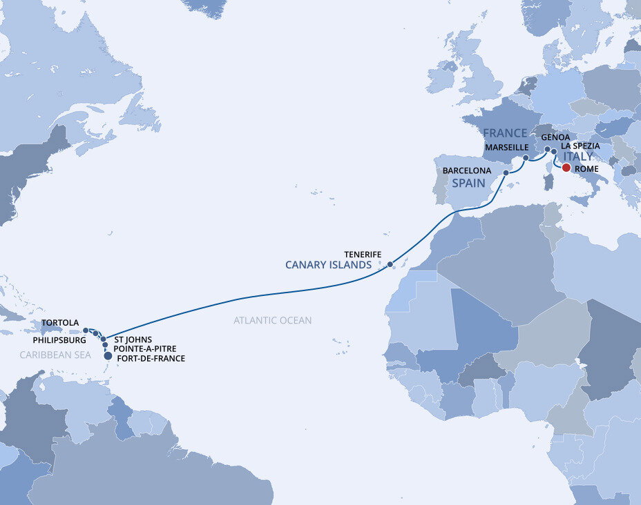 Fort-de-France, located on Martinique is the largest city in the French West Indies and it has personality to match. Life here is vibrant and fast-paced, and the culture is as colourful as the brightly painted shops that line the city’s cobblestone streets. Ships will dock at the port.