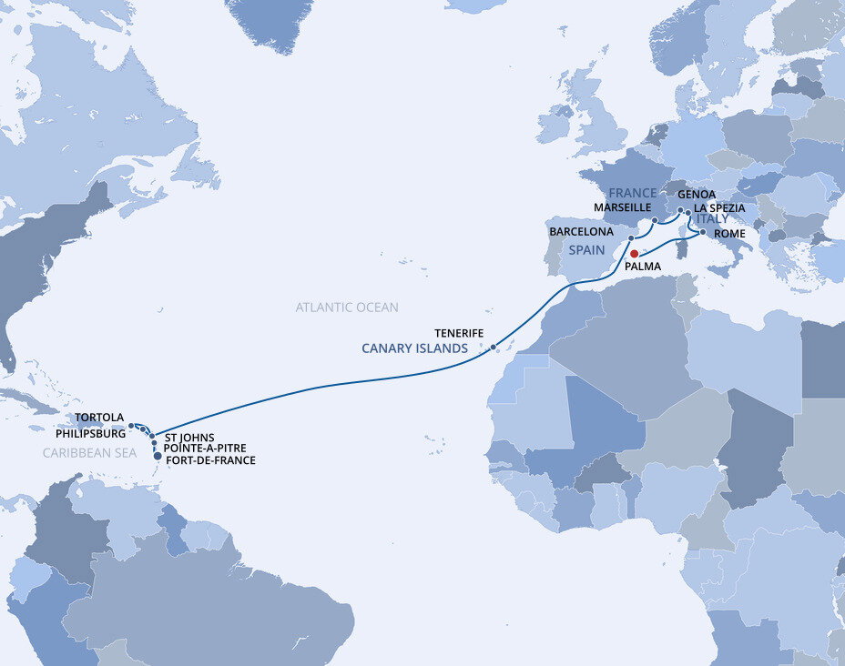 Fort-de-France, located on Martinique is the largest city in the French West Indies and it has personality to match. Life here is vibrant and fast-paced, and the culture is as colourful as the brightly painted shops that line the city’s cobblestone streets. Ships will dock at the port.