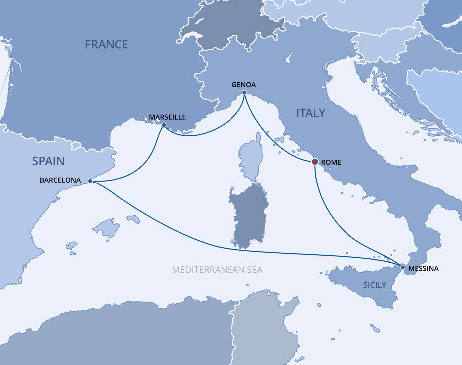 Messina is located on the northeastern corner of Sicily and is the panoramic gateway to the island. Sitting on a sickle-shaped harbour and under the gaze of Mt. Etna, the city is a patchwork of churches and antique palaces. Ships will dock at the cruise terminal.