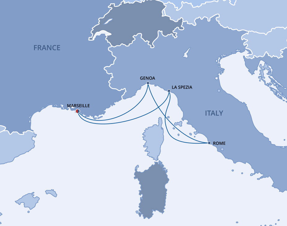 A busy port town and home to the country's largest naval base, La Spezia wears its maritime heritage proudly. Sandwiched between the hills and the sea, this atmospheric town has a great combination of historical buildings and beautiful scenery. From La Spezia, Florence is approximately 150 km (93 miles) away, reachable in about 2 hours. Pisa is 80 km (50 miles) away and the picturesque Cinque Terre villages are 30 km (18 miles) away.