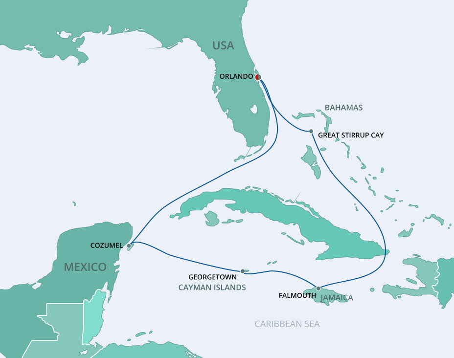 Nestled in the Bahama’s Berry Island chain is a 250-acre uninhabited paradise waiting for you. Great Stirrup Cay is a private retreat designed specifically for cruise guests enjoyment. Ships will anchor offshore and tenders will be provided to the shore.
