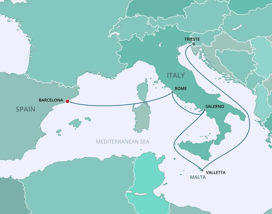 The lively seaport of Salerno is a thriving modern metropolis with ancient origins. Its elegant lungomare, a shoreside promenade, offers far-reaching views of the sea and the mountains beyond. The city boasts an ideal location with both the ruins of Roman cities and the stunning Amalfi Coast in easy reach. Ships will dock at this port.