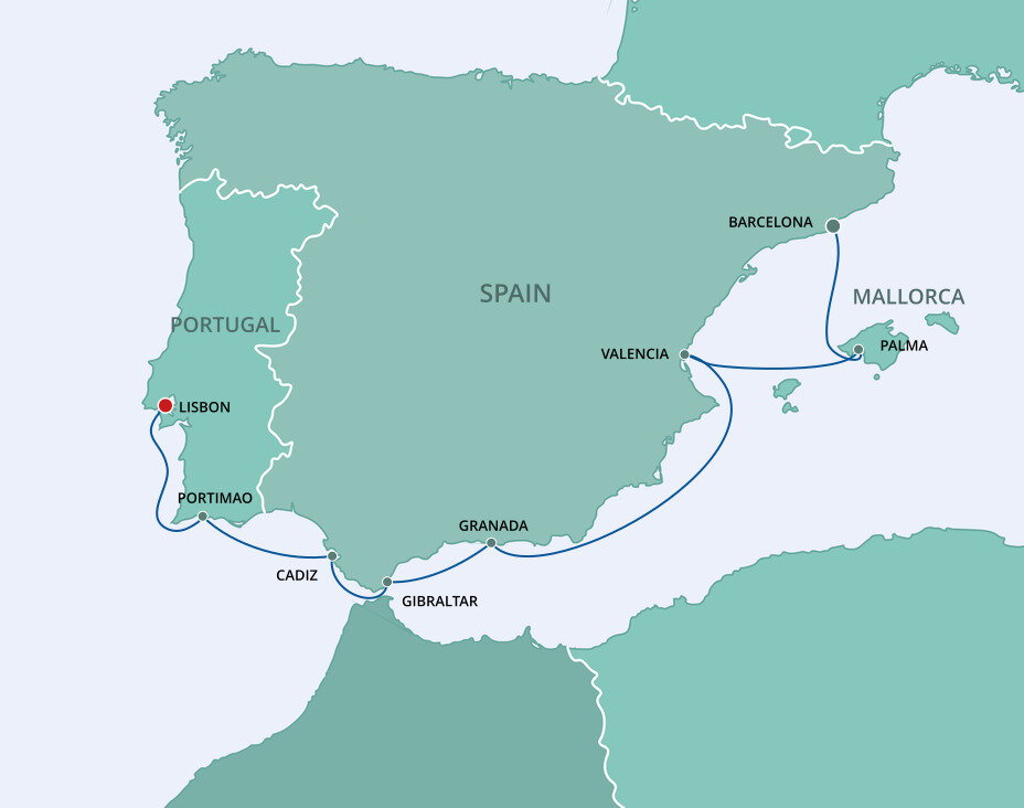 Situated on the sun-kissed coastline of Algarve, Portimão is a colourful city with a bustling waterfront and a charming city centre decorated with parks and plazas. Framed by golden sands and impressive cliffs, the city is a beachy heaven. Small ships will dock at the cruise terminal, while large ships will anchor offshore.