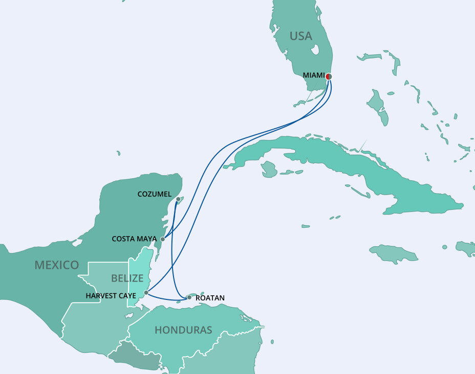 Featuring an enchanting range of environments such as tropical rainforests, marshes and coral reefs, Harvest Caye offers both relaxation and adventure amid lush landscapes. This pristine mangrove-covered 75-acre private island is a gem in the crown of Belize’s natural resources. Ships will dock at this port.