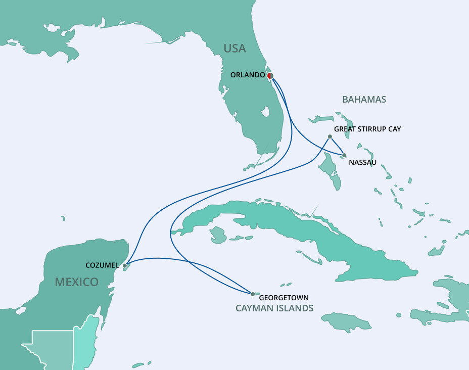 Nestled in the Bahama’s Berry Island chain is a 250-acre uninhabited paradise waiting for you. Great Stirrup Cay is a private retreat designed specifically for cruise guests enjoyment. Ships will anchor offshore and tenders will be provided to the shore.
