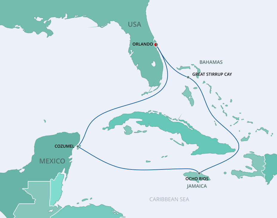 Nestled in the Bahama’s Berry Island chain is a 250-acre uninhabited paradise waiting for you. Great Stirrup Cay is a private retreat designed specifically for cruise guests enjoyment. Ships will anchor offshore and tenders will be provided to the shore.