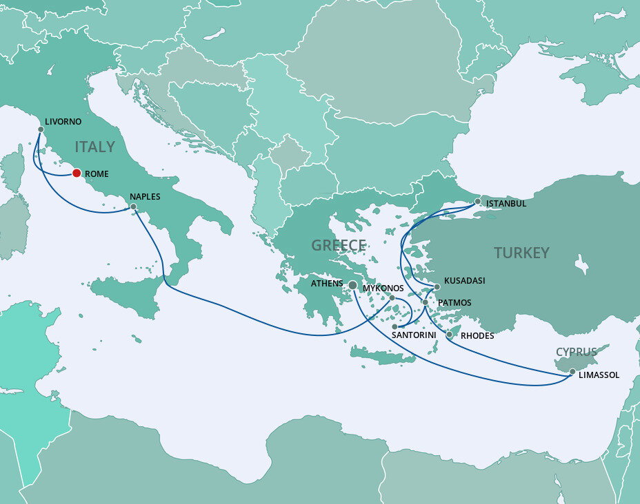 The vibrant city of Limassol is located on Akrotiri Bay in the shadow of the Troodos mountains. Its the jumping off point to explore the ancient riches of Cyprus. See ruins, majestic mountains and scenery, stunning beaches, and vast groves of lemons, oranges and olives. Ships will dock at the cruise terminal.