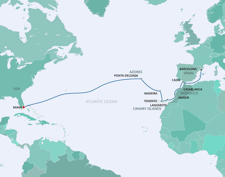 This multicultural city where the sun rules supreme is more than just a cruise port. Palm-lined causeways stretch across luminous Biscayne Bay as Miami rises in a gleam of glass towers, Art Deco curves, and tropical colour. Along Ocean Drive in South Beach, pastel facades from the 1930s glow beneath the Florida sun, while nearby Little Havana hums with domino parks, cigar shops, and the aroma of Cuban coffee. Beyond the shoreline, calm waters, yacht marinas, and breezy promenades frame a city shaped by Caribbean rhythms and sunlit coastal glamour.