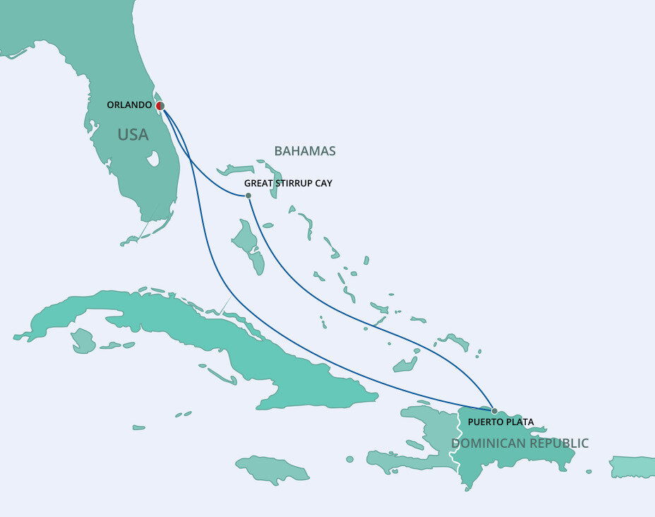 Nestled in the Bahama’s Berry Island chain is a 250-acre uninhabited paradise waiting for you. Great Stirrup Cay is a private retreat designed specifically for cruise guests enjoyment. Ships will anchor offshore and tenders will be provided to the shore.
