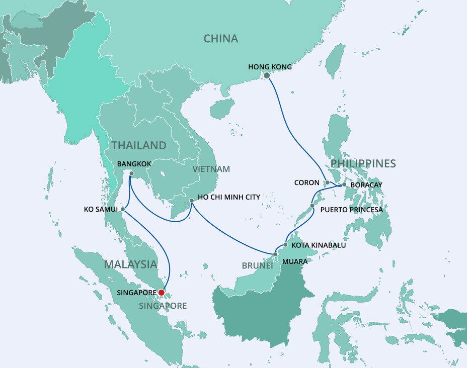 The capital city of Palawan Island in the Philippines is a fascinating landscape of caves, forests, and coastline. Often acclaimed as the cleanest and greenest city in the Philippines, it offers a wealth of attractions such as turquoise water, white-sand beaches, underground rivers, and wildlife reserves. Ships will dock at the port.