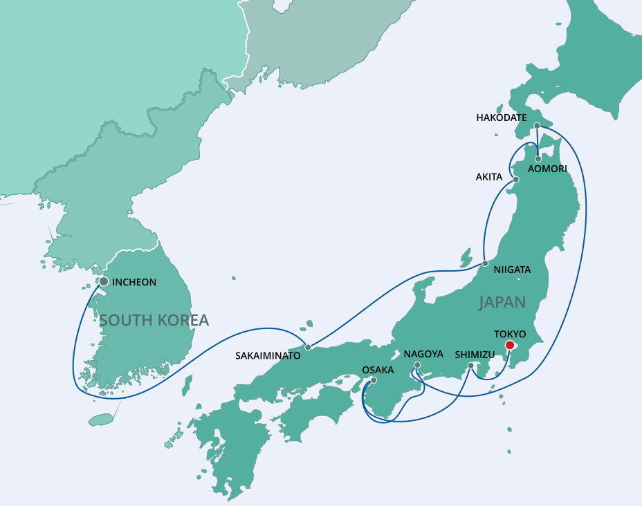 Honshu's northernmost city is full of picturesque historic temples, museums, and close to incredible nature like Mt. Hakkoda. In the spring and summer, Aomori bursts to life with cherry blossom festivals and the fiery Nebuta Festival every August. Ships dock at the Shin-Chuo wharf.