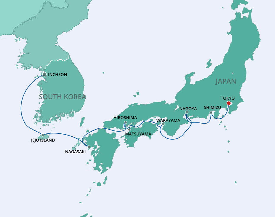 Ships will dock in Incheon (40km/24mi away, 30 minutes away by car).