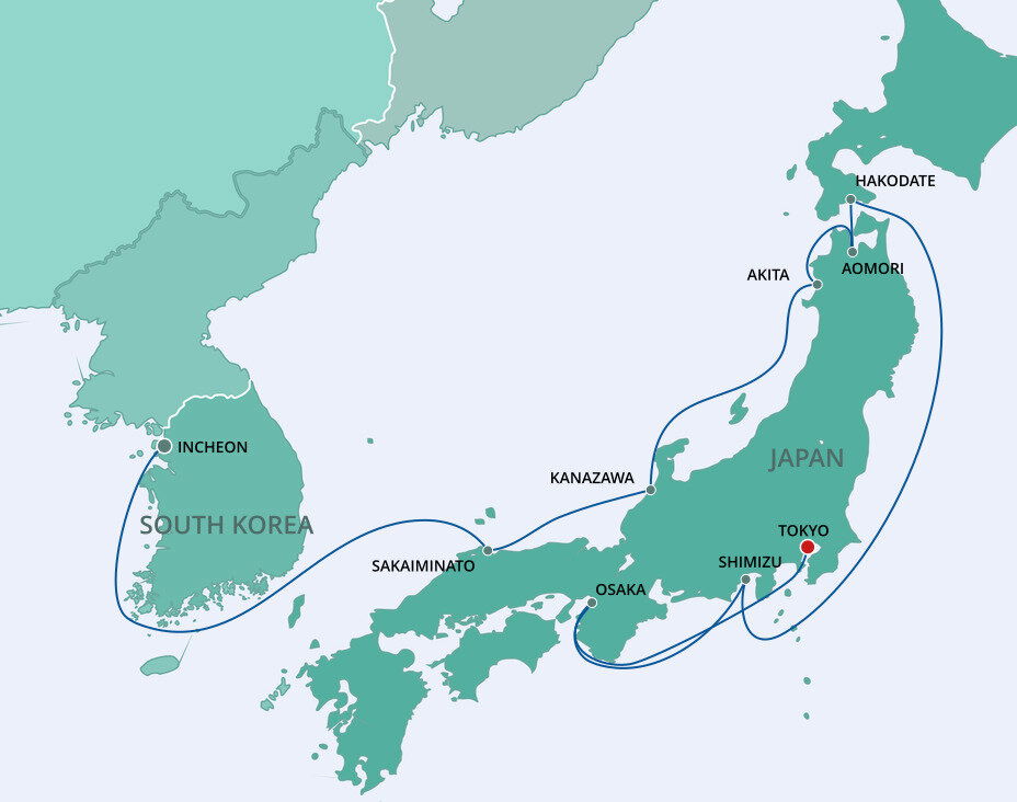 Honshu's northernmost city is full of picturesque historic temples, museums, and close to incredible nature like Mt. Hakkoda. In the spring and summer, Aomori bursts to life with cherry blossom festivals and the fiery Nebuta Festival every August. Ships dock at the Shin-Chuo wharf.