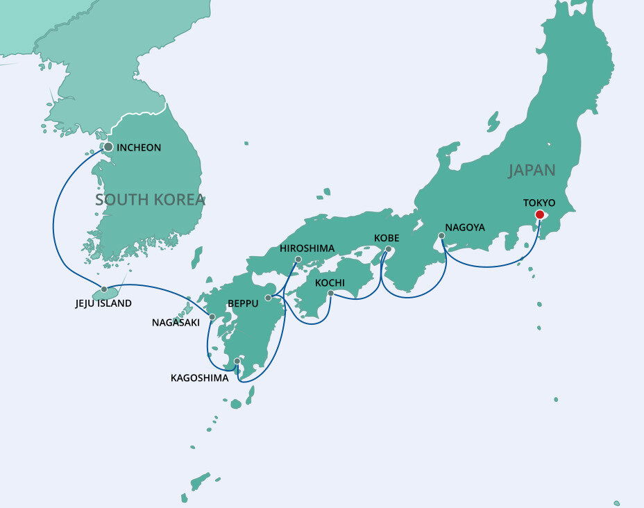 Overlooking Beppu Bay to its east and dramatic mountain peaks to the west, Beppu is blanketed with misty turquoise waters and elegant Japanese foliage. Its main attraction is the 'Hells of Beppu,' a collection of 8 onsen, or hot springs, some of which feature geysers and colourful waters ranging from white to copper to sapphire. Ships will dock at the port of Beppu.