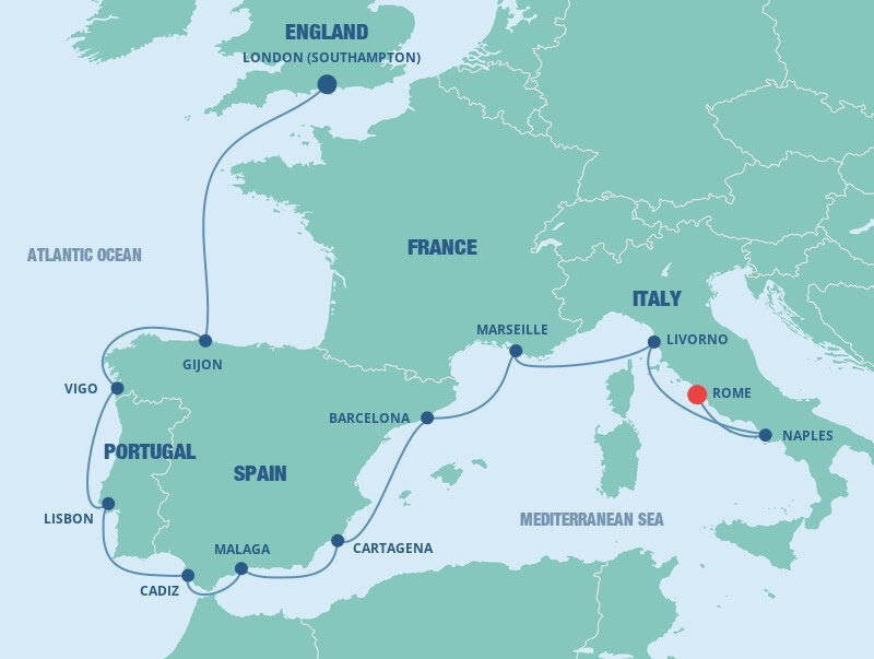 Málaga is the lively capital of the Costa del Sol, famed for its beaches and mild climate. It is a city of narrow streets, whitewashed houses, churches and sunny plazas. Málaga also serves as a popular starting point for excursions to splendid Granada and the famed Alhambra. Ships will dock at the Málaga cruise terminal.