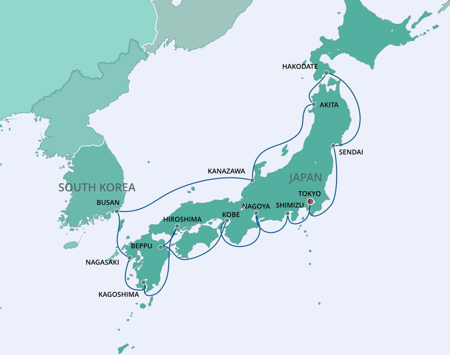 Overlooking Beppu Bay to its east and dramatic mountain peaks to the west, Beppu is blanketed with misty turquoise waters and elegant Japanese foliage. Its main attraction is the 'Hells of Beppu,' a collection of 8 onsen, or hot springs, some of which feature geysers and colourful waters ranging from white to copper to sapphire. Ships will dock at the port of Beppu.