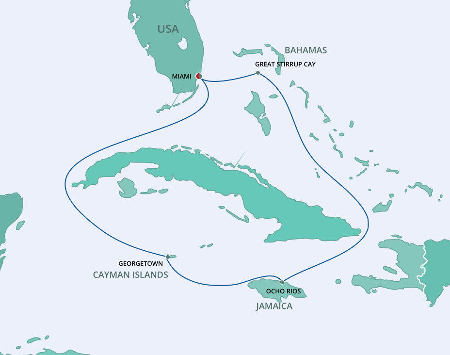 Nestled in the Bahama’s Berry Island chain is a 250-acre uninhabited paradise waiting for you. Great Stirrup Cay is a private retreat designed specifically for cruise guests enjoyment. Ships will anchor offshore and tenders will be provided to the shore.