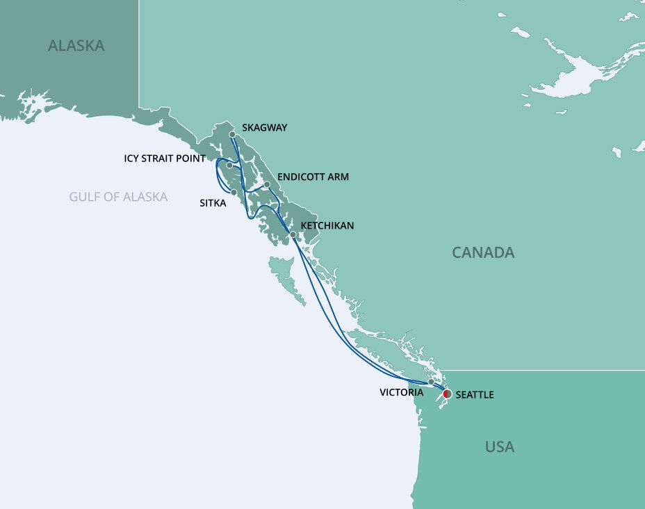 Venture 'where the north wind doesn’t blow' and discover Icy Strait Point. This uniquely Alaskan port is one of the few places in the world where wildlife outnumbers the human population. Pine trees as tall as skyscrapers, humpback whales, eagles, wild salmon, black bears and more form the harmonious tapestry of life in this Alaskan hinterland. Ships will dock at this port.