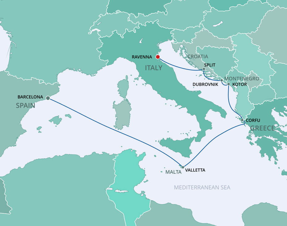 Ravenna, “The Mosaic City”, is best known for its churches which date back 1,500 years and are decorated with stunning Byzantine mosaics. If you're not staying in Ravenna at the end of your cruise, Bologna it's approximately 85 kms (53 miles) away, and Venice is approximately 140 kms (87 miles) away - a journey that takes about 2 hours by train.