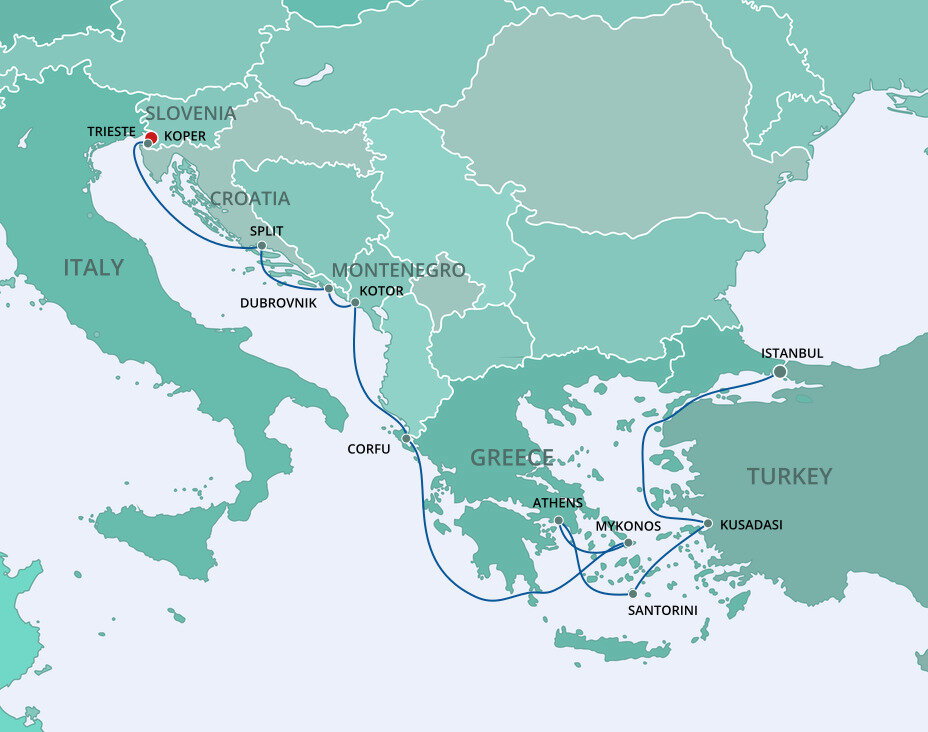 Backed by hills of olive groves and vineyards, the historic port of Koper boasts a colourful history dating back to Ancient Greece and Rome that springs to life in its Old Town. Koper is also your gateway to Ljubljana, the nation's capital, a graceful city of Baroque and Art Nouveau architecture and bridges. Ships will dock at the Potniški terminal.