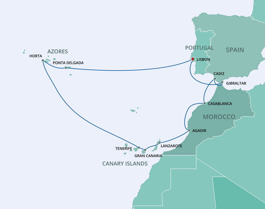 Located on São Miguel, the largest of the Azores archipelago, Ponta Delgada is a place of whitewashed buildings, spectacular volcanic vistas, steaming hot springs and impressive landscaped gardens. This city is the gateway to the stunning landscape and lush nature of São Miguel. Ships will dock at Portas do Mar.
