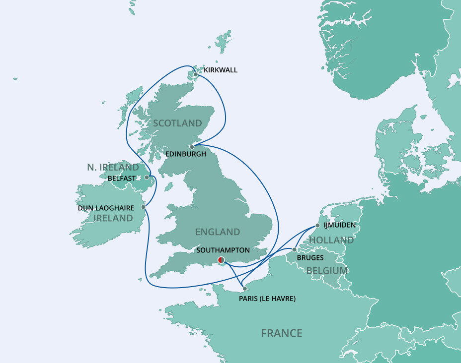 Kirkwall is the capital of the Orkney Islands, it is considered one of the most charming and well preserved small towns in Scotland. The islands offer dramatic landscapes with cliffs rearing 1,000 feet above the waves to sweeping white sand beaches. Small ships will dock at this port, while larger ships will anchor offshore.
