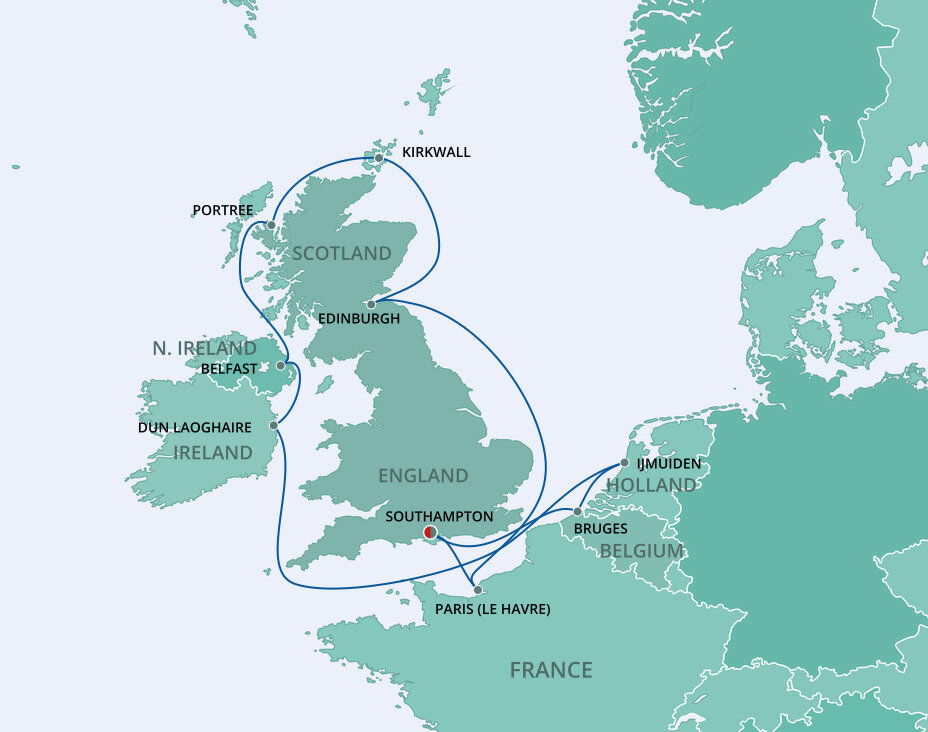 Nestled between the Highlands and the Border Hills, Edinburgh is a gracious city noted for its superb skyline, its impressive collection of architecture and its beautiful parks. Here you'll find the best of central eastern Scotland: spectacular views, rolling hills and castles. Ships will dock at the Port of Leith Cruise Liner Terminal.