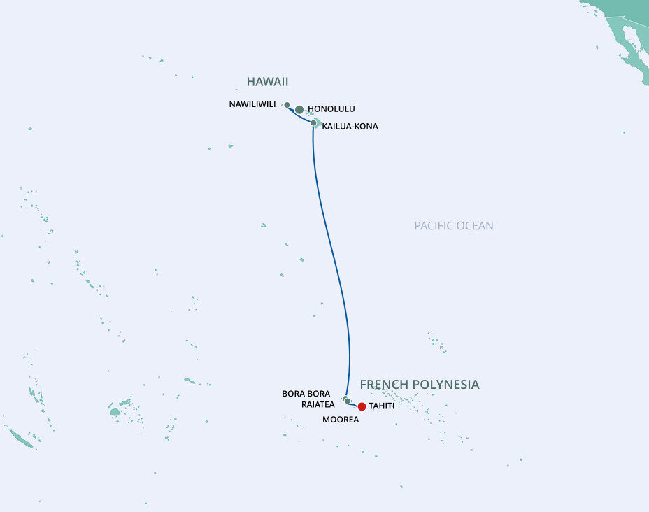 The island's unique geography makes Moorea one of French Polynesia's most breathtaking islands. Eight mountain peaks carpeted in lush vegetation rise from a translucent lagoon and two tranquil bays. Ships will anchor offshore and tenders will be provided to the shore.