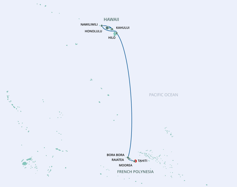 The island's unique geography makes Moorea one of French Polynesia's most breathtaking islands. Eight mountain peaks carpeted in lush vegetation rise from a translucent lagoon and two tranquil bays. Ships will anchor offshore and tenders will be provided to the shore.