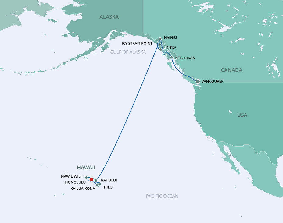 Venture 'where the north wind doesn’t blow' and discover Icy Strait Point. This uniquely Alaskan port is one of the few places in the world where wildlife outnumbers the human population. Pine trees as tall as skyscrapers, humpback whales, eagles, wild salmon, black bears and more form the harmonious tapestry of life in this Alaskan hinterland. Ships will dock at this port.