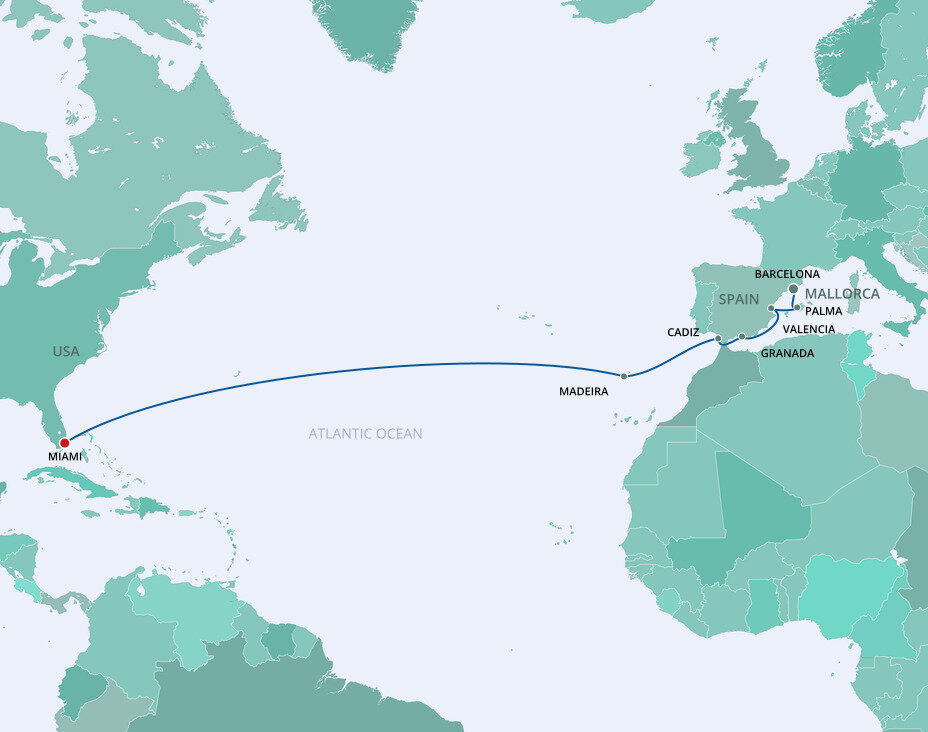 The Port of Cádiz is located directly adjacent to the city center, so you'll be able to explore the historic heart of Cádiz with a short 10-minute walk. The city is renowned for its ancient maritime heritage, beautiful beaches, and well-preserved landmarks such as the Cádiz Cathedral and the Torre Tavira, offering panoramic views of the city. If your plan is to visit Seville, it's about 120 kilometers (75 miles) away - roughly a 90-minute drive. Consider arranging a guided excursion to make the most of your time in this historic city.