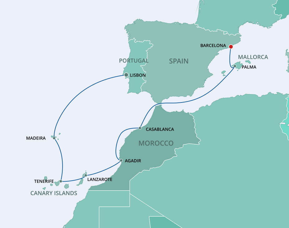 Your cruise finishes today in Barcelona, a captivating city on Spain's northeastern coast. If you're extending your stay in the city, start with a visit to La Sagrada Família, Antoni Gaudí's masterpiece, then wander through the narrow, historic streets of the Gothic Quarter.