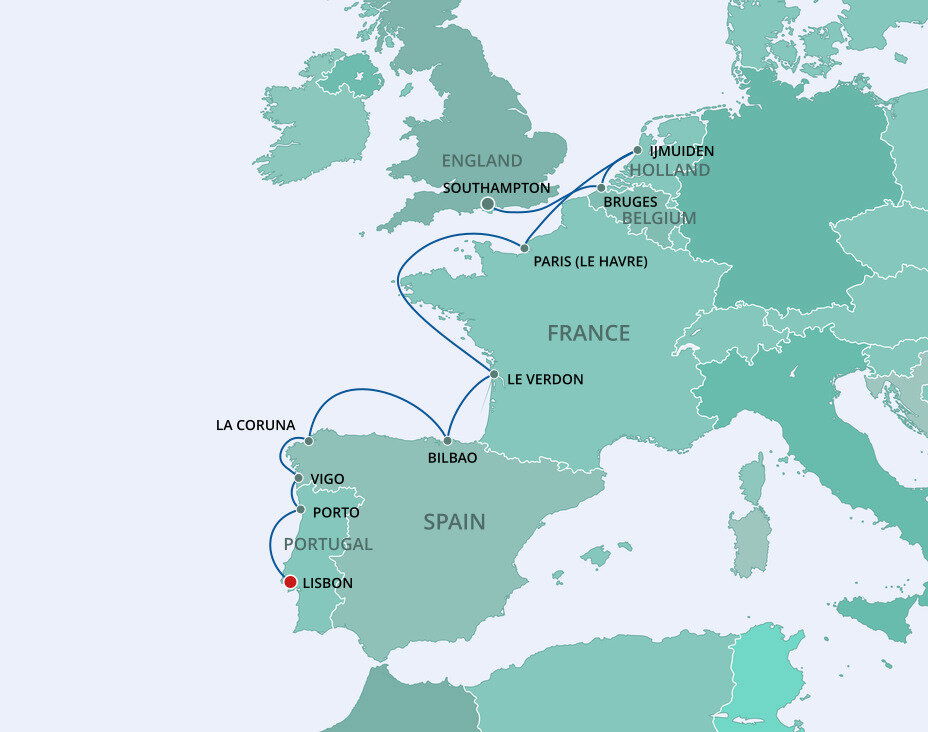 Surrounded by green mountains and lined by the beautiful blue water of the Bay of Biscay, Bilbao is magnificent mix of historic and spectacular modern architecture. Famed for its Guggenheim Museum, clad in glimmering titanium, this enormous structure is a work of art itself. Ships will dock in Getxo, which is a 20 minute drive from Bilbao.