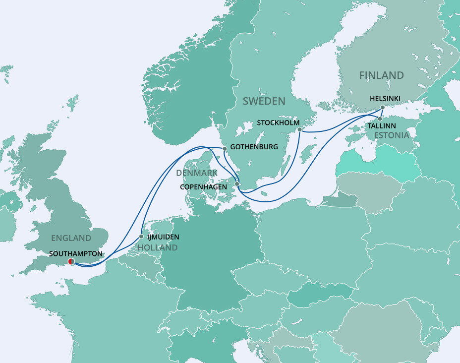 NyNashamn is a tender port located approximately 60 kilometers (37 miles) south of Stockholm, Sweden. Tender boats will take you from the ship to the dock, where you can catch a shuttle bus or take a train to Stockholm. The journey to Stockholm typically takes around 60-75 minutes. NyNashamn itself has a charming harbor with local shops and cafes, making it a pleasant spot to explore if you prefer to stay close to the port.