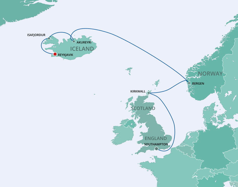 Iceland’s Capital of the North is the gateway to a thrilling land of roaring waterfalls, soaring volcanoes and glorious wildlife. Situated at the head of Eyjafjordur, Iceland's longest fjord and with a backdrop of dramatic snow-covered mountains, Akureyri is Iceland's second largest city. Ships will dock at the pier.